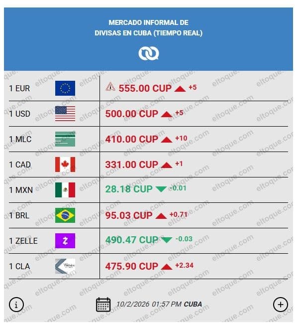 El dólar estadounidense superó este 10 de febrero de 2026, a la 1:38 p. m. (hora de Cuba), la marca simbólica de los 500 pesos cubanos (CUP) en el mercado informal, según el registro de la tasa representativa del mercado informal (TRMI) que elabora el medio independiente elTOQUE. El nuevo nivel confirma la tendencia sostenida de depreciación del peso cubano y marca un nuevo capítulo en la crisis cambiaria que atraviesa la isla, en un contexto de colapso energético, escasez de divisas y profundos desequilibrios estructurales de la economía. No sabemos por cuánto tiempo mantendrá ese valor o cuáles serán las fluctuaciones en el futuro inmediato.