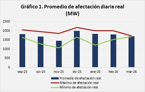 Y, si tomamos en cuenta que el mínimo de febrero (Gráfico 1 y Tabla 3), el mes de menor promedio de afectaciones durante 2026, es visiblemente más alto que los de octubre y noviembre del año pasado, esto pudiera presagiar una crisis superior a la de diciembre en el transcurso de esta primavera o con la llegada del verano. Marzo de 2026, por ejemplo, tuvo valores de afectación 96 MW por debajo de la de diciembre de 2025, pero con una demanda promedio 272.7 MW menor que este último mes.