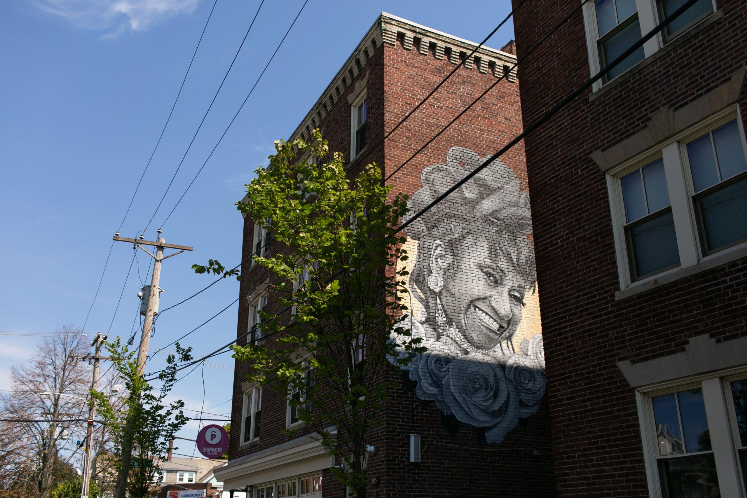 Mural de Maggie Keane dedicado a Celia Cruz e imágenes de homenajes a la cantante cubana.