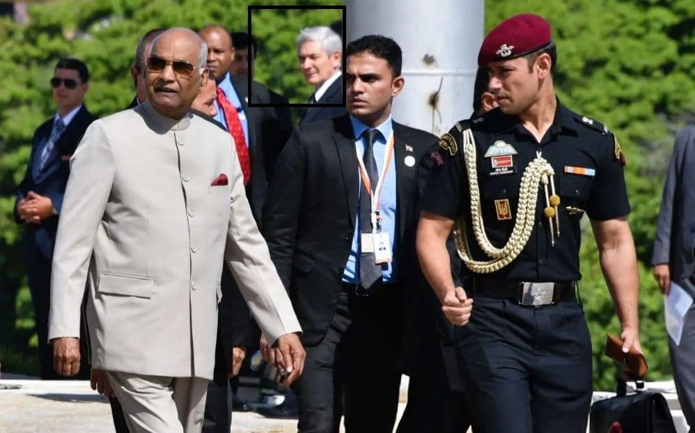 En otra fotografía de Getty Images, fechada junio de 2018 y reproducida por varios medios internacionales, vuelve a identificarse al coronel cubano como parte del dispositivo de seguridad del entonces presidente de la India, Shri Ram Nath Kovind, durante su visita oficial a Cuba. El análisis visual muestra coincidencias relevantes con registros anteriores, tanto en rasgos físicos como en patrones de ubicación dentro de los esquemas de protección.