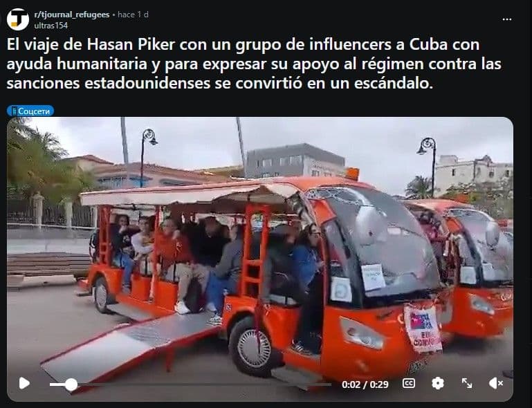 Una delegación con carteles y maletas compradas en el capitalismo feroz salta y grita, con una alegría que en realidad es burla, «socialismo es lo que queremos»; y lleva carteles en forma de corazón en los que se lee «abajo el bloqueo» y viste pulóvers blancos, impolutos, con la frase «Cuba no está sola»; y se reúne con un Díaz-Canel emocionado que porta saco y camisa y hay luz, mucha luz, en todos los lugares a los que va y hay combustible para moverla; y se hospeda en hoteles desde los que, claro, parece que la cosa en la isla no está tan mala como la contaban.