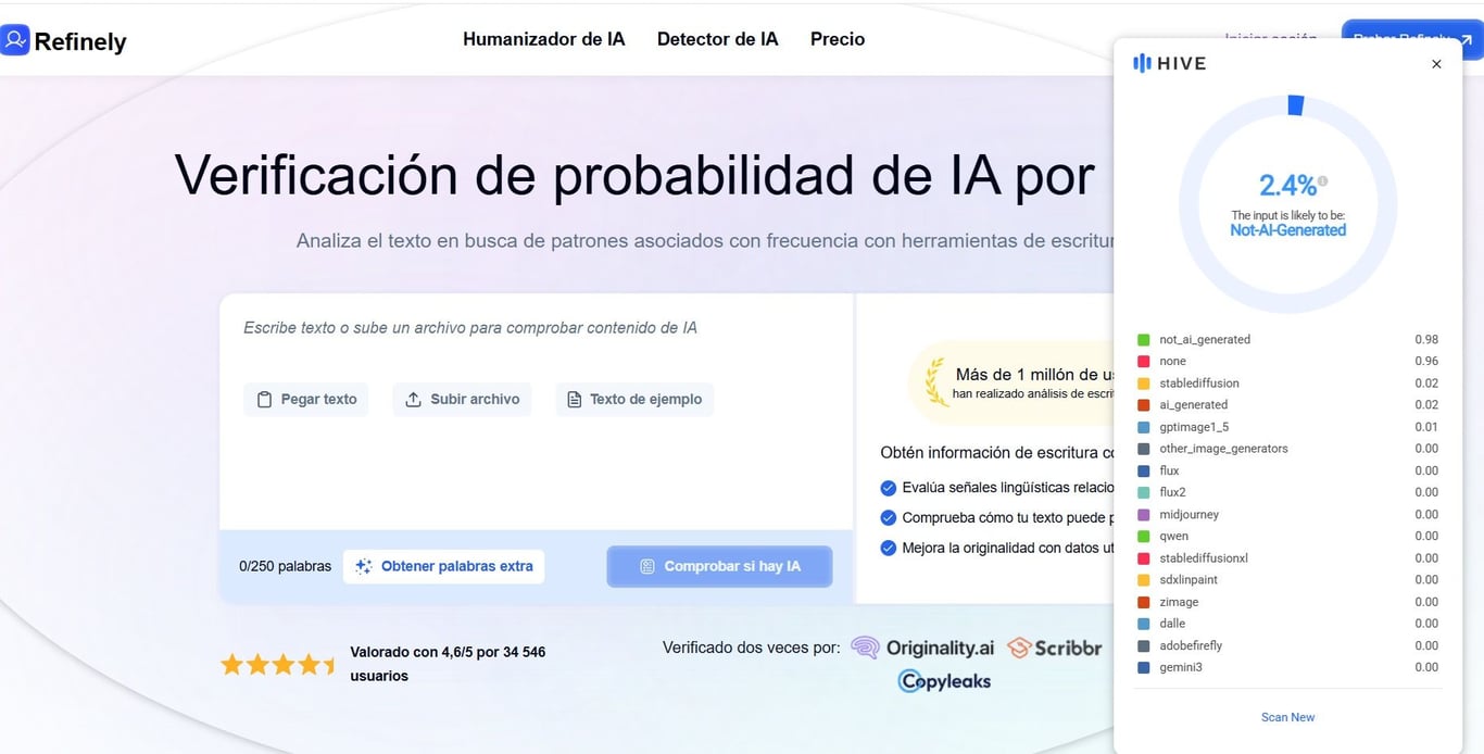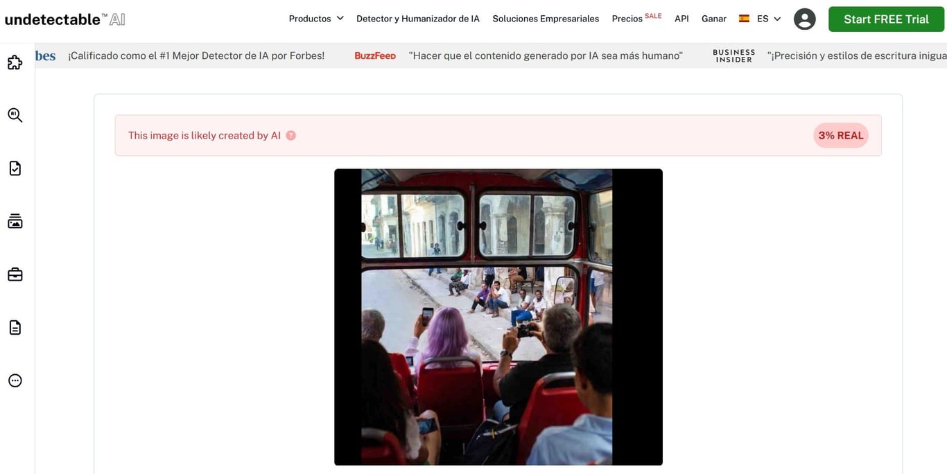 Tras analizarla con herramientas de detección como Hive Moderation, AI or Not e InVid, entre otras, los resultados coinciden en que presenta una probabilidad en extremo alta de haber sido generada artificialmente, con estimaciones que la sitúan con apenas un «3 % real».