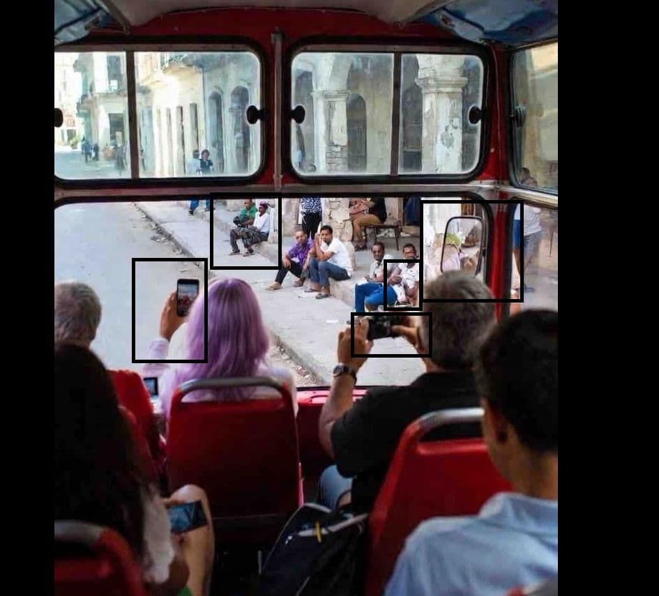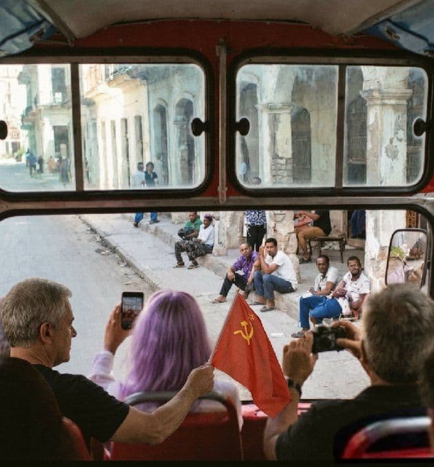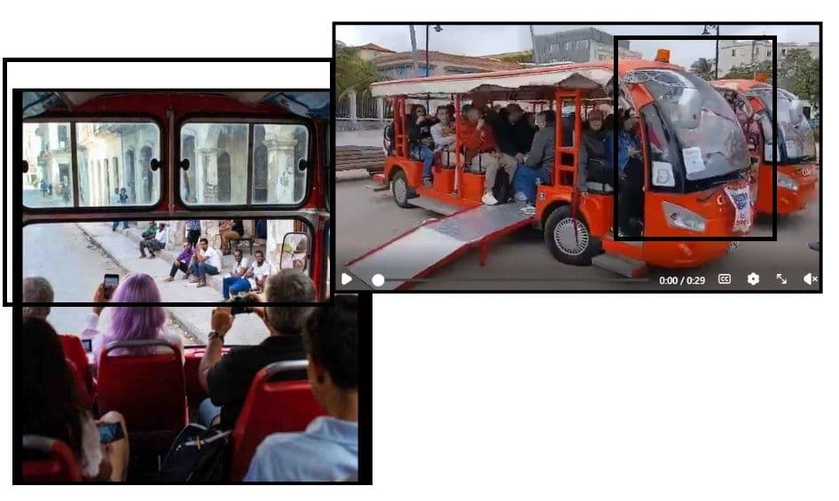 Entre los reportes y publicaciones sobre la llegada a Cuba del «Convoy Nuestra América» con «ayuda humanitaria» se ha viralizado una imagen en la que supuestamente aparecen algunos de sus integrantes dentro de un autobús fotografiando a personas sentadas en un contén de una calle habanera, visiblemente empobrecida.