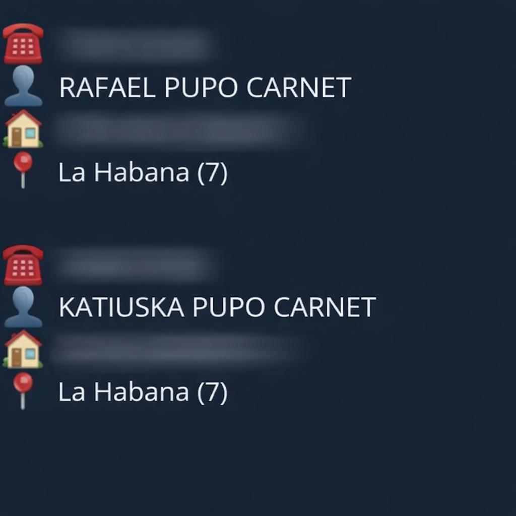 Comprobamos que existe el nombre al buscarlo en bases de datos de identidades filtradas hace años en Cuba. Obtuvimos una coincidencia exacta: Rafael Pupo Carnet, residente en el barrio Flores.