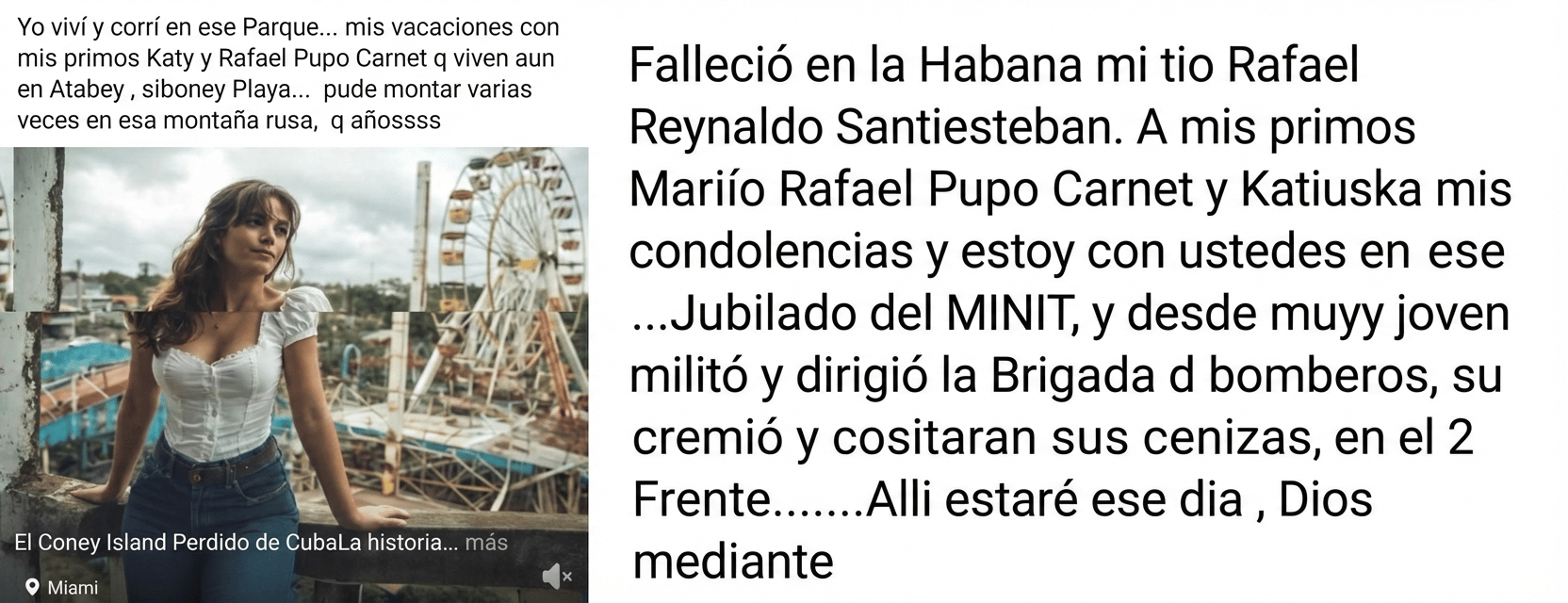 Confirmamos que Katiuska y Rafael Pupo son hermanos gracias a una publicación en redes sociales de un primo materno. La publicación añadió que vivían en Playa en fecha tan temprana como los años 70’ y 80' del pasado siglo. Dicho primo también reseñó el fallecimiento del padre de los Pupo en agosto de 2020. «Jubilado del Minint, desde muy joven militó y dirigió la brigada de bomberos», una descripción que coincide con una base de datos actualizada hasta 1984, que contiene la información de antiguos oficiales cubanos.