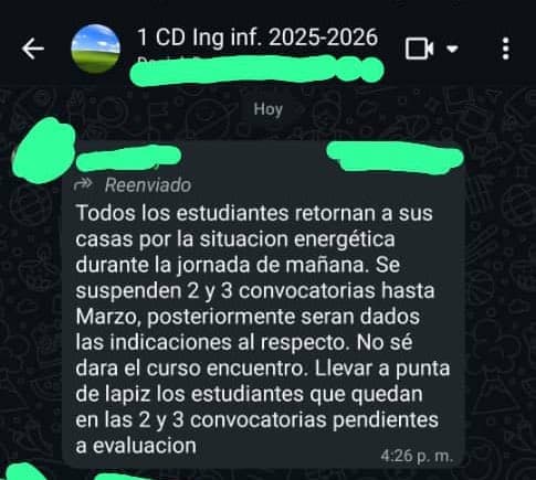 El contenido y el tono de estas orientaciones sugieren que no se trata de una interrupción temporal ni de una medida de corto alcance. Por el contrario, las comunicaciones asumen un escenario prolongado de crisis, en el que se normaliza la enseñanza a distancia y se traslada la responsabilidad de los medios técnicos y económicos a los estudiantes. Esto ocurre en un contexto de altos costos del acceso a Internet y de conectividad inestable. ¿Si los apagones superan las 20 horas diarias en casi todo el país, como podrán cargar sus equipos (quienes pueden tenerlos) y estudiar? Además, cuando no hay corriente también falla la señal de Internet.