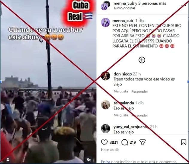 El video difundido por CubaReal —una página con alrededor de 12 000 seguidores en Facebook y que se presenta como «plataforma de periodismo independiente que muestra la realidad de Cuba»— también ha sido compartido como si fuera actual por otros usuarios e influencers en Instagram, donde publicaciones con el mismo material acumulan miles de reacciones.