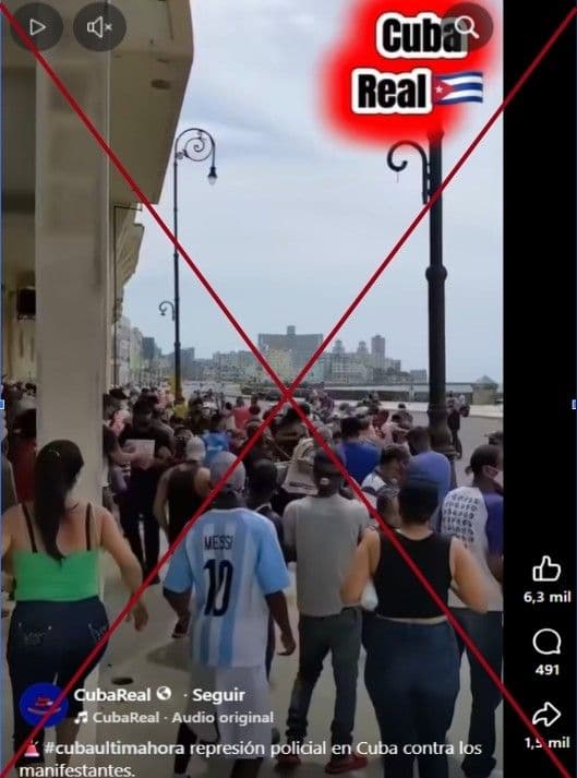 La página de Facebook CubaReal publicó el 8 de marzo de 2026 un clip acompañado de la descripción «represión policial en Cuba contra los manifestantes». Sin embargo, las imágenes corresponden a las protestas del 11 de julio de 2021 (11J) en La Habana.